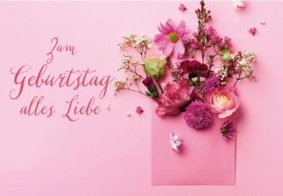 Geburtstag - Blumen und rosa Kuvert