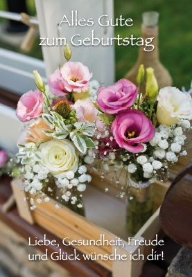 Geburtstag - wunderschöne Blumen im Holzkasten