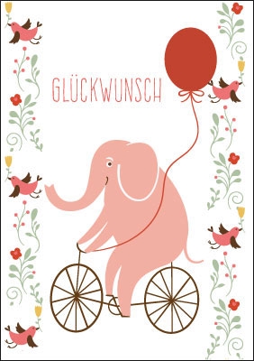 Eigenschaften "Kleine Kartengrüße - rosa Elefant auf Fahrrad"