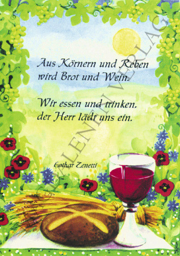Aus Körnern und Reben wird Brot und Wein. Wir essen und trnken, der Herr lädt uns ein.