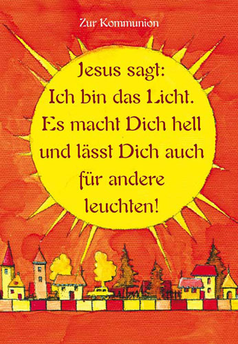 Kommunion Doppelkarte Sonne über Dorf, grafisch gestaltet