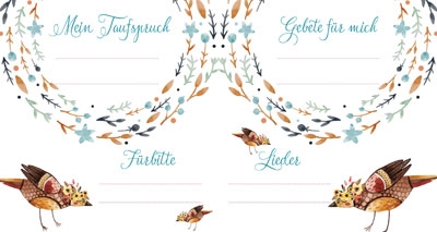 Ein Kind ist geboren und wir feiern seine Geburt, indem wir seinen Namen mit Gottes Segen verbinden. Die Taufe, ein unvergessliches Ereignis. Dieses Erinnerungsb?chlein ist ein kleiner Familienschatz, liebevoll gestaltet wartet es auf ganz pers?nliche Eintr?ge.