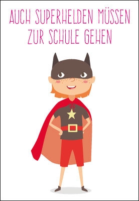 Eigenschaften "Schulanfang - kleiner Superheld mit Maske, illustriert"