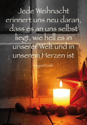 Jede Weihnacht erinnert uns neu daran, dass es an uns selbst liegt, wie hell es in unserer Welt und in unserem Herzen ist. Irmgard Erath