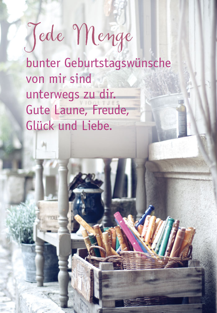 Jede Menge bunter Geburtstagswünsche von mir sind unterwegs zu dir. Gute Laune, Freude, Glück und Liebe