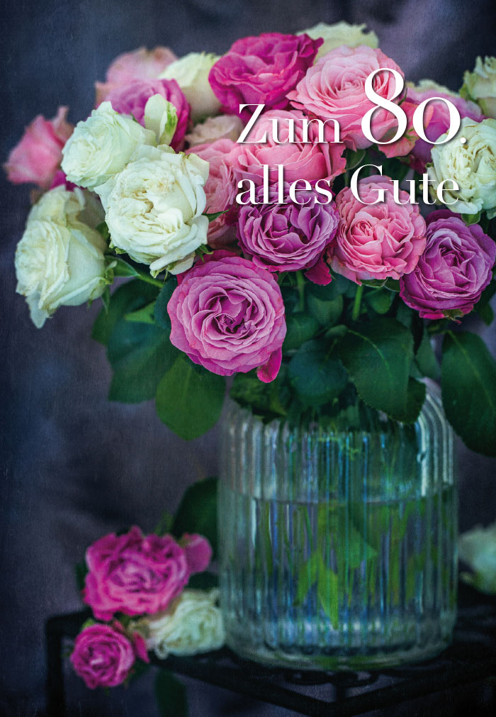 Zahlengeburtstag - rosa, weiße und lila Rosen