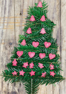 Weihnachten - Kleine Kartengrüße geschmückter Baum