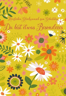 Produktinformationen "Geburtstag - illustrierte Blumen auf gelbem Grund"