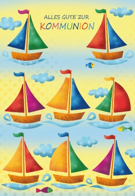 Produktinformationen "Kommunion - bunte Segelboote, illustriert"