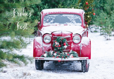 Produktinformationen "Weihnachten - roter, geschmückter Oldtimer "